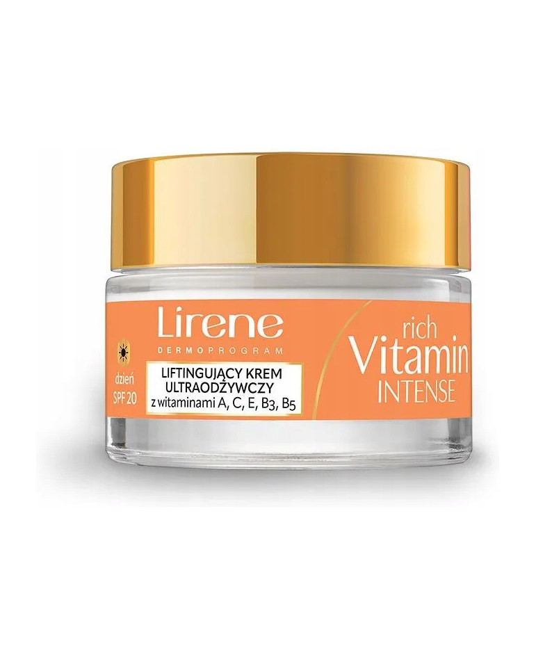 Poznaj niezwykły krem liftingujący wzbogacony o drogocenne działanie kompleksu witaminowego, witamin z grup: A,C,E,B3,B5 i zobacz jak ta bogata kompozycja działa odżywczo na Twoją cerę.