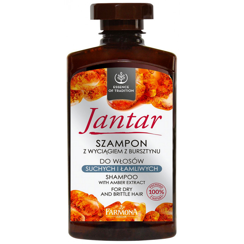 Szampon Jantar oparty jest na sprawdzonej, niezmienionej od lat recepturze, dzięki której włosy zyskują jedwabisty blask i siłę. Zawiera naturalny wyciąg z bursztynu, kompleks witamin A, E, F oraz Inutec - naturalny prebiotyk - o doskonałych właściwościach kondycjonujących. Wyciąg z bursztynu pielęgnuje, wzmacnia i wygładza włosy, równocześnie zapobiega ich przetłuszczaniu. Jako naturalny filtr słoneczny chroni przed szkodliwym działaniem środowiska. Po umyciu włosy stają się jedwabiste, miękkie, lśniące i podatne na układanie.