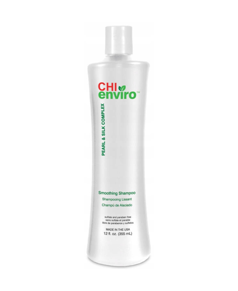 CHI Enviro American Smoothing Treatment to nowoczesna kuracja wygładzająca i regenerująca włosy. W skład produktów tej serii wchodzą bogate w aminokwasy i proteiny naturalnego jedwabiu i pereł. Zawarta w kuracji organiczna cysteina łączy się z cysteiną naturalnie występującą we włosach, dzięki czemu podczas prostowania włosów wiązania aminokwasów nie zostają zerwane, a jedynie następuje ich przestawienie. Efektem działania CHI Enviro są odbudowane, wygładzone, łatwo układające się i pozbawione skrętu włosy.Pielęgnacja i stylizacja domowa CHI Enviro to seria kosmetyków polecanych do włosów kręconych, puszących się, zniszczonych chemią fryzjerską.