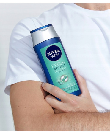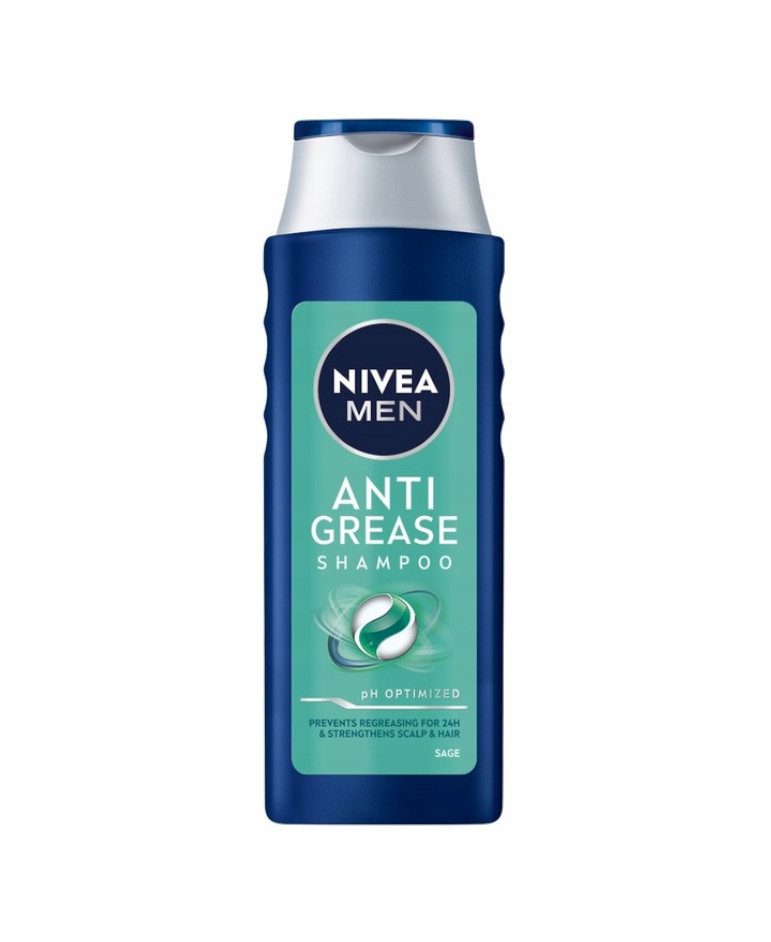 NIVEA MEN Anti Grease skutecznie oczyszcza włosy i skórę głowy jednocześnie przeciwdziała i zapobiega przetłuszczaniu się skóry głowy przez 24 godziny.
