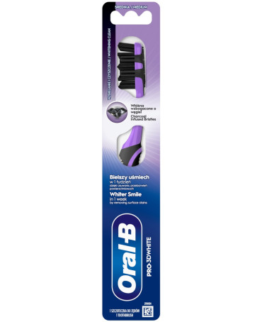 ORAL-B PRO-3DWHITE CHARCOAL Szczoteczka do zębów – dokładne czyszczenie i wybielanie – średnia, 1 szt
