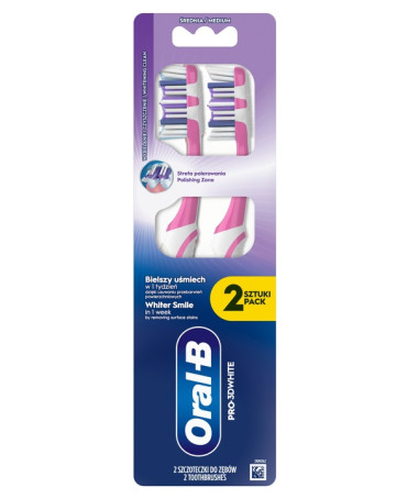 Poznaj niezwykłą szczoteczkę Do Zebow Pro-3D White Medium 40 Oral B o średniej miękkości - w dwupaku.