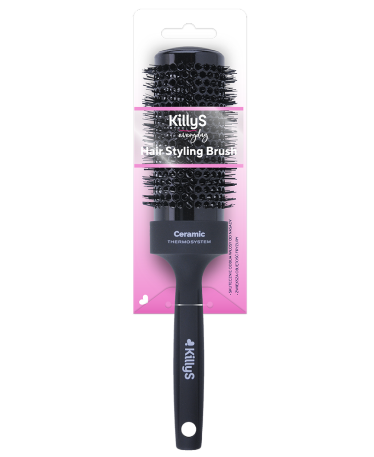 Korpus szczotki posiada powłokę ceramiczną, która po użyciu ciepła równomiernie się nagrzewa i szybko rozprowadza je na całej długości włosów.