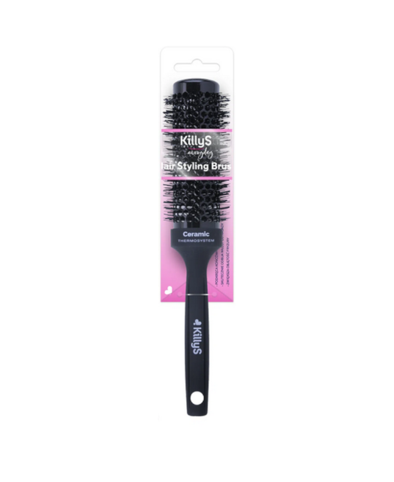 Korpus szczotki posiada powłokę ceramiczną, która po użyciu ciepła równomiernie się nagrzewa i szybko rozprowadza je na całej długości włosów.