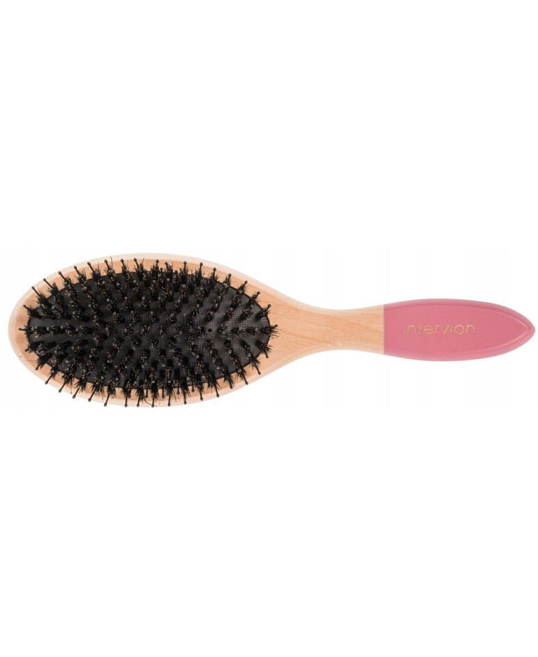 Szczotka wyposażona w naturalne włosie dzika wykazuje właściwości antystatyczne, dodatkowo nylonowe szpilki ujarzmiają puszące się włosy.