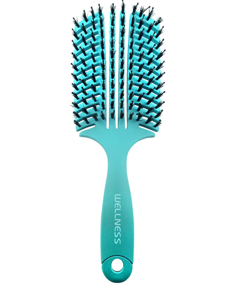 Szczotka do rozczesywania włosów, która pozwala delikatnie i skutecznie rozczesać nawet najbardziej oporne i grube włosy. Jest to zasługa przede wszystkim unikalnej budowy szczotki oraz szerokiego rozstawu zębów. Dzięki temu włosy się nie plączą a jedynie poddają się działaniu delikatnemu włosiu.