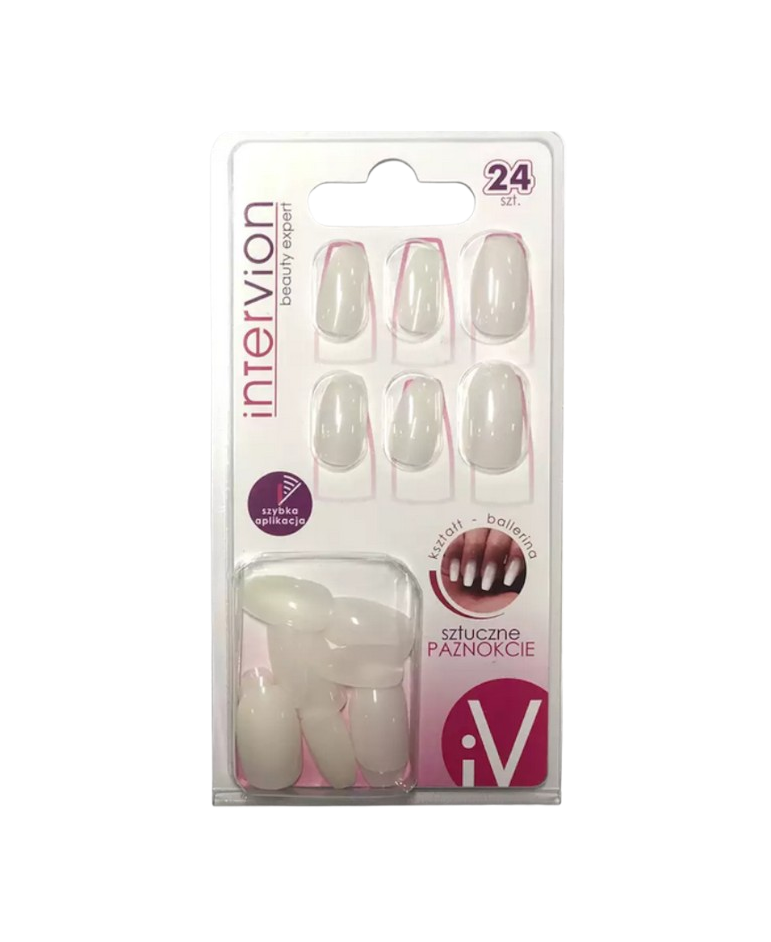 Sztuczne paznokcie w modnym kształcie i mlecznym kolorze, wykonane z wysokiej jakości tworzywa sztucznego. Są elastyczne i trwałe.