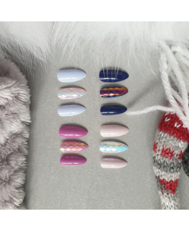 Nie ma potrzeby używania lampy czy lakierów. Te eleganckie paznokcie są już ozdobione, więc wystarczy je tylko przykleić do swoich paznokci i cieszyć się perfekcyjną stylizacją.Paznokcie mają kształt migdała.