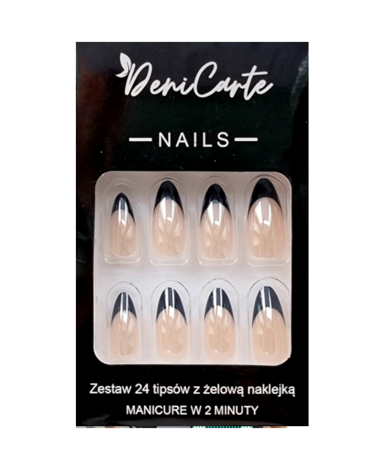 DENI CARTE Sztuczne Paznokcie - Migdał - 7783 Black French
