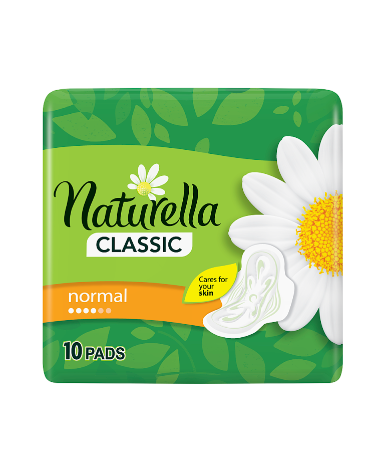 Podpaski Naturella Classic Normal ze skrzydełkami mają rumiankową kompozycję zapachową i specjalny system chłonny z kwiatowym wzorem, który odprowadza wilgoć i utrzymuje ją z dala od skóry, dzięki czemu będziesz czuła się sucho i komfortowo.