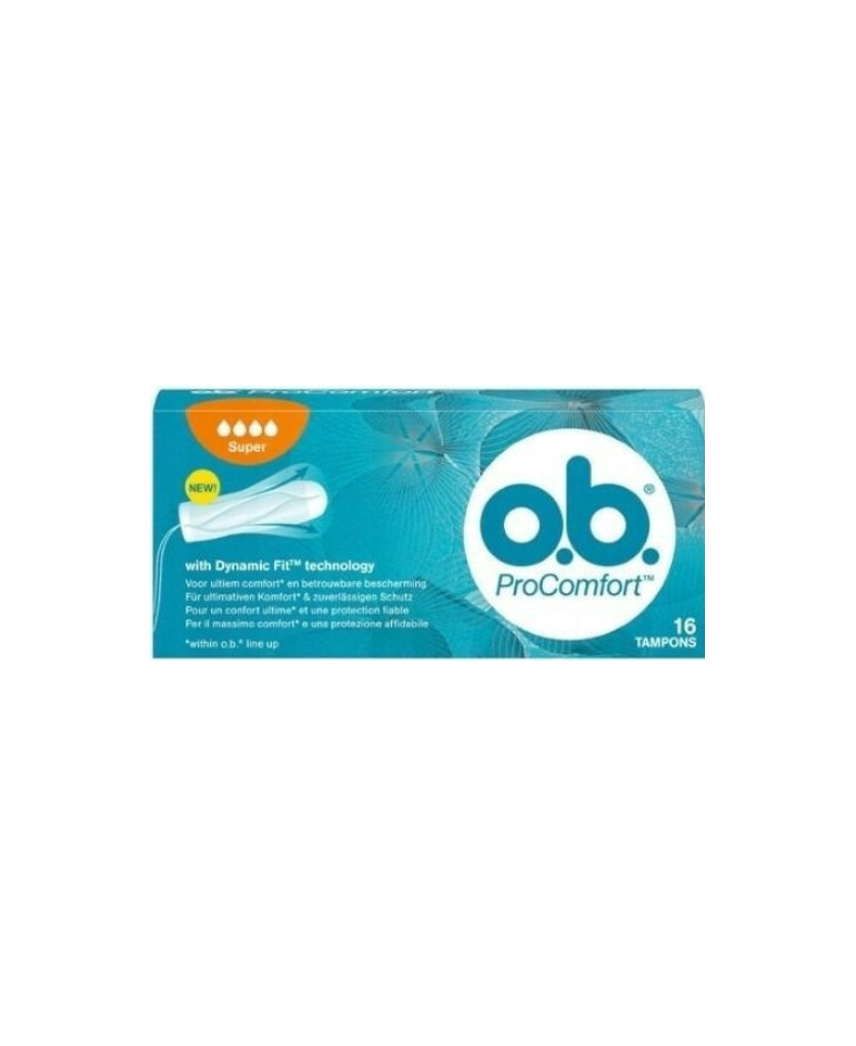 Tampony o.b.® ProComfort™ zapewniają łatwą aplikację dzięki otoczce SilkTouch™ oraz niezawodną ochronę dzięki rewolucyjnej technologii DynamicFit™ z 3D expansion, dzięki której tampon o.b.® dostosowuje się do twojego ciała i efektywnie wychwytuje płyn, kierując go poprzez splecione rowki do wnętrza i w górę tamponu. Tampony o.b.® ProComfort™ Super są najlepsze na dni o obfitym krwawieniu.