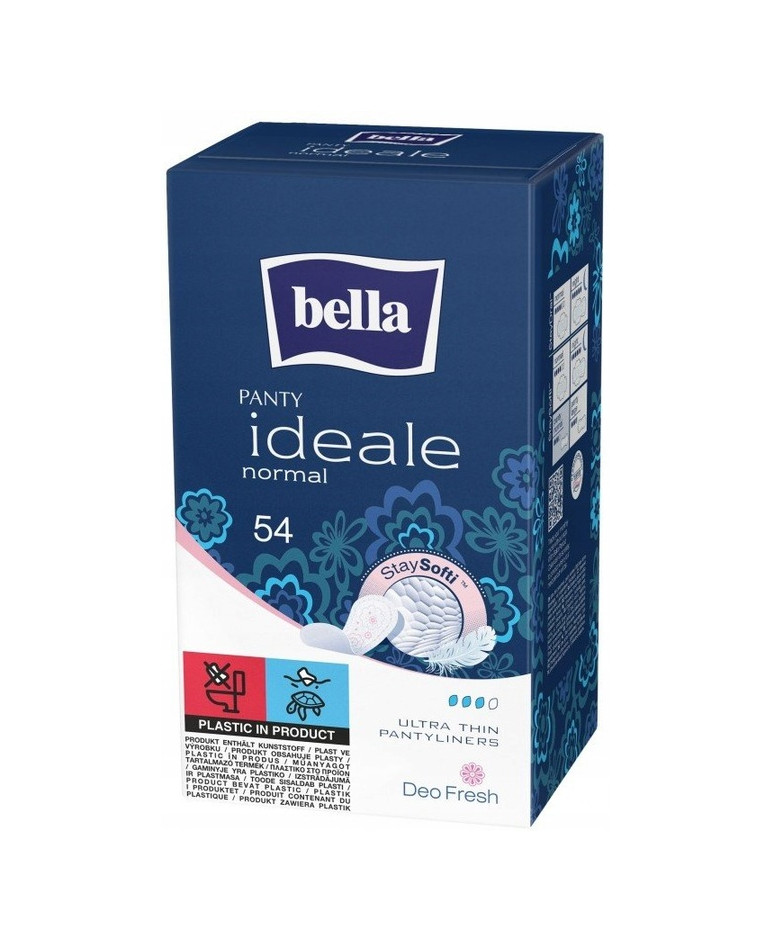 Ultracienkie wkładki higieniczne Bella Panty Ideale Normal z innowacyjnym pokryciem StaySofti są niezwykle delikatne oraz szybko odprowadzają wilgoć zapewniając poczucie świeżości i komfortu przez cały dzień.