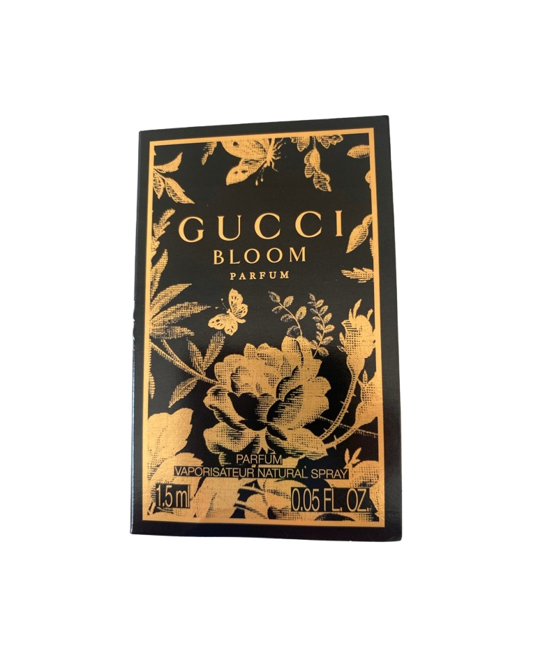 Flakon perfum Gucci Bloom Parfum jest zamknięty w intensywnej północnej czerni, uosabiającej głębię i siłę zapachu. Jego złote detale, inspirowane charakterystycznym dla domu Gucci nadrukiem liści, gałązek wiśni, kwiatów i motyli, przywołują uczucie ciepła i wytwornej elegancji. Ten portret kwitnącej kobiecości inspiruje kobiety do podkreślania swojego piękna i celebrowania indywidualności.