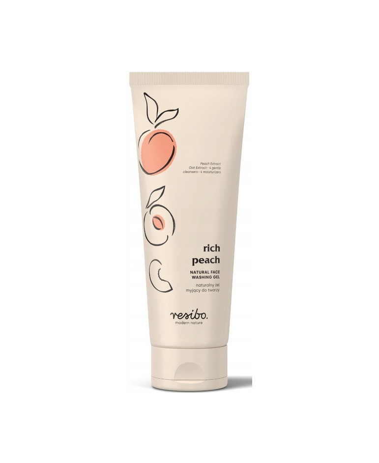 Resibo Naturalny żel myjący do twarzy z ekstraktem z brzoskwini delikatnie oczyszcza skórę za pomocą naturalnych substancji powierzchniowo-czynnych, skutecznie usuwając zanieczyszczenia. Żel zapobiega utracie wody przez skórę, dbając o jej nawilżenie i ochronę.